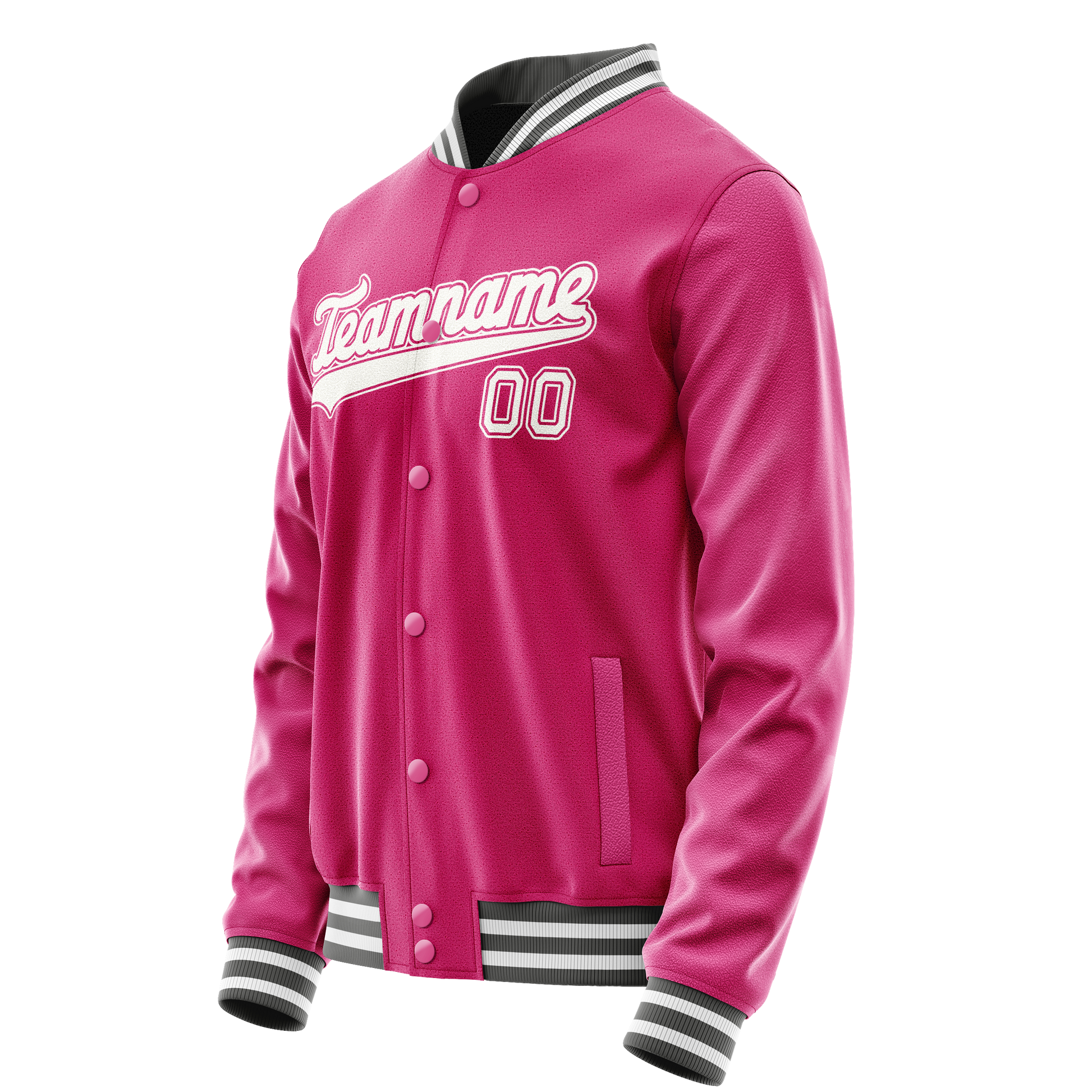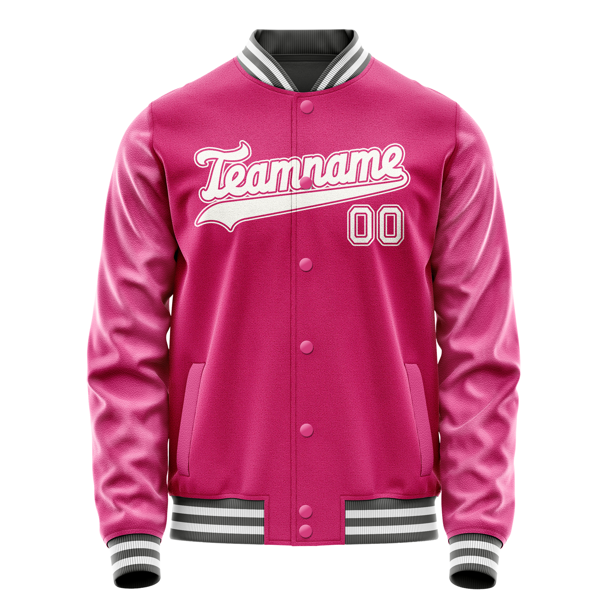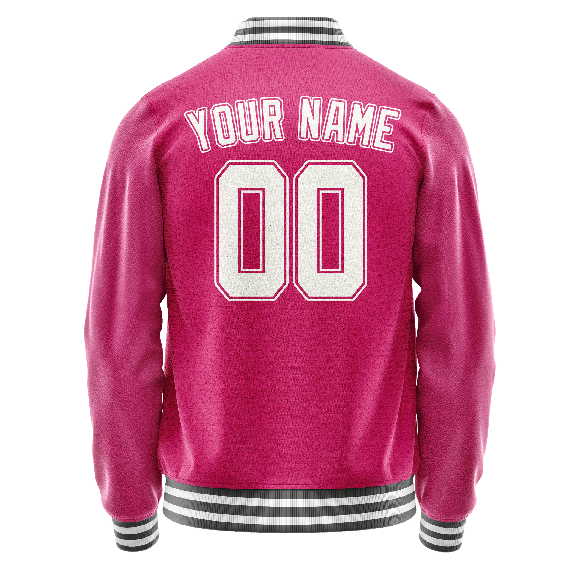 Custom Pink White Solid Color Varsity Letterman Jacket