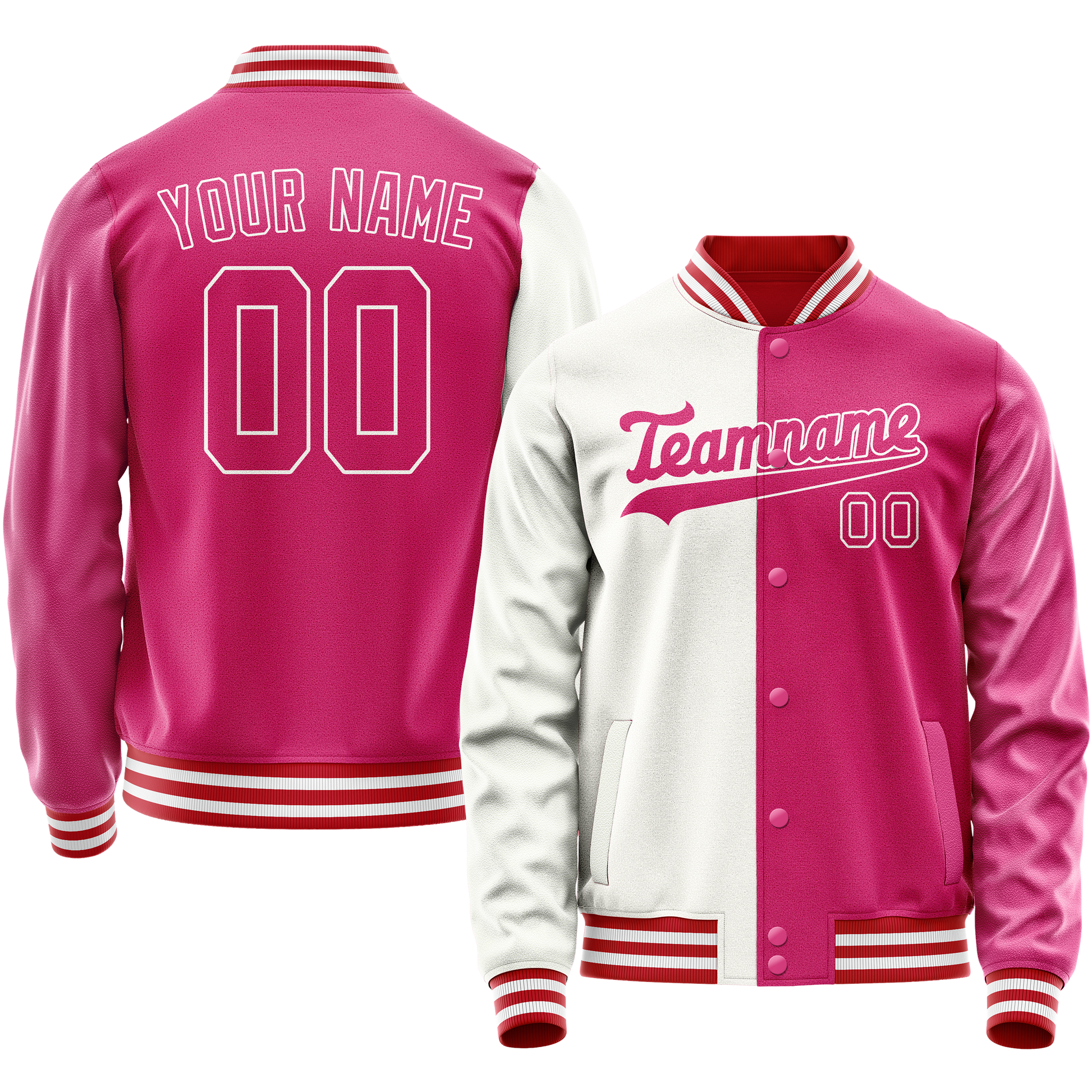 Custom Pink White Split Varsity Letterman Jacket
