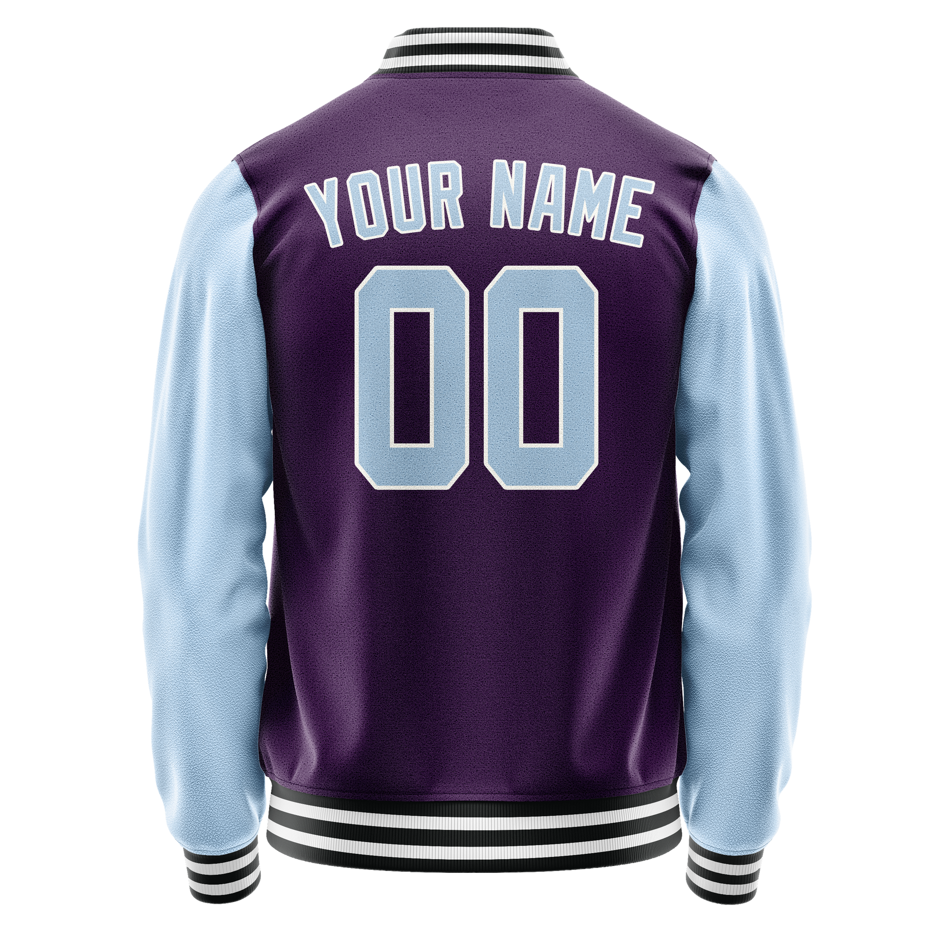 Custom Purple Light-Blue Solid Color Varsity Letterman Jacket