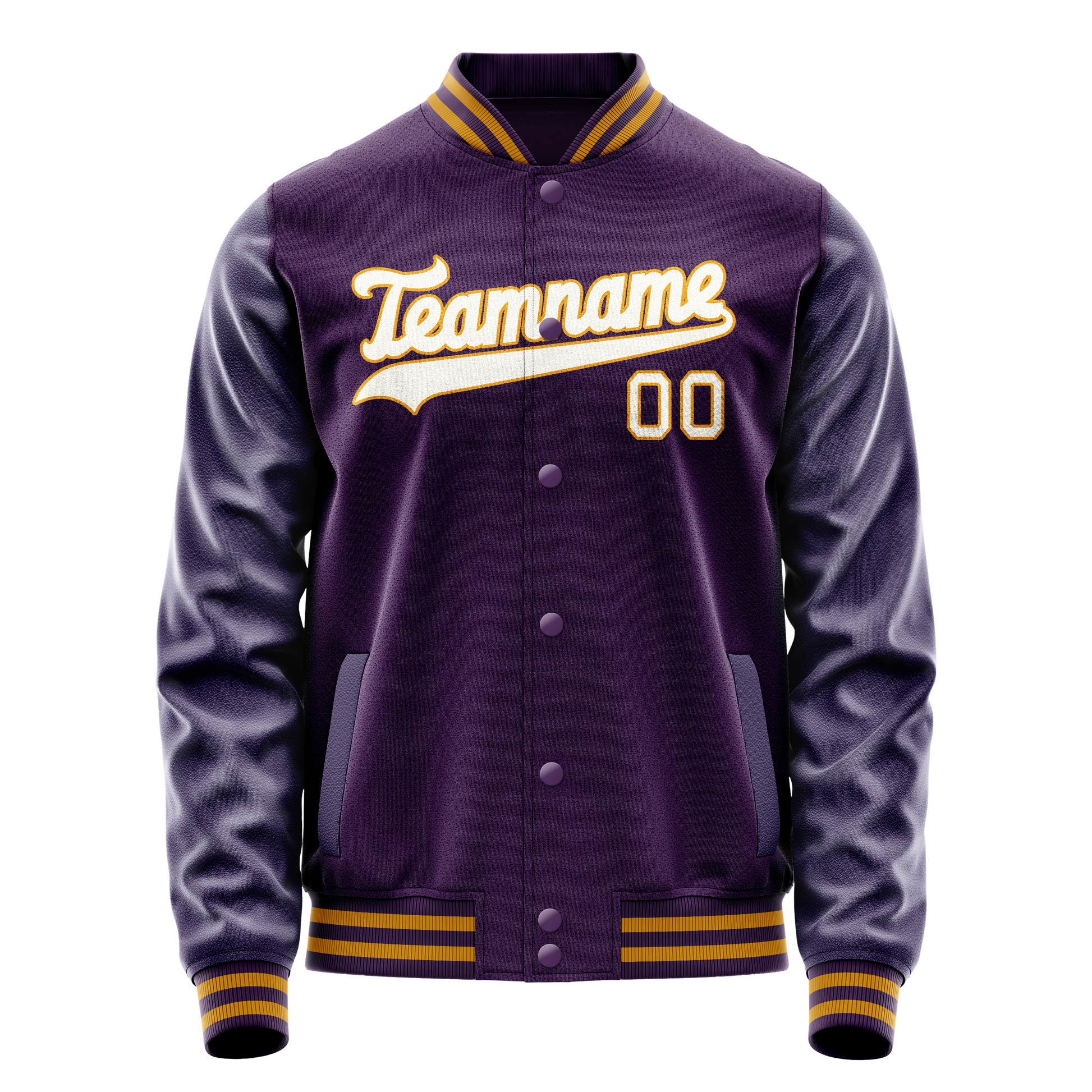 Custom Purple White Solid Color Varsity Letterman Jacket