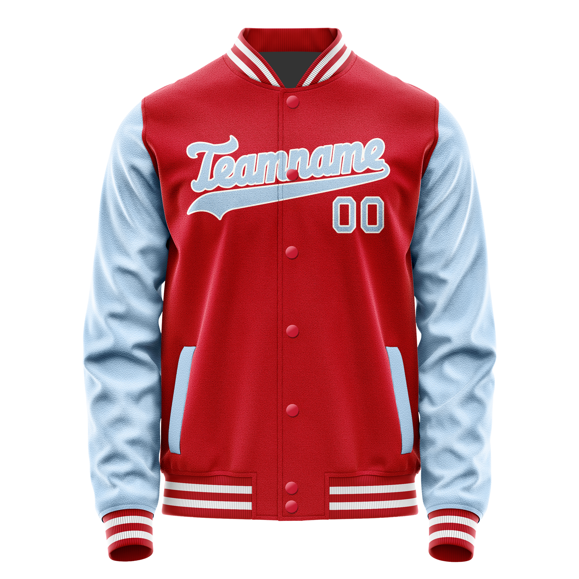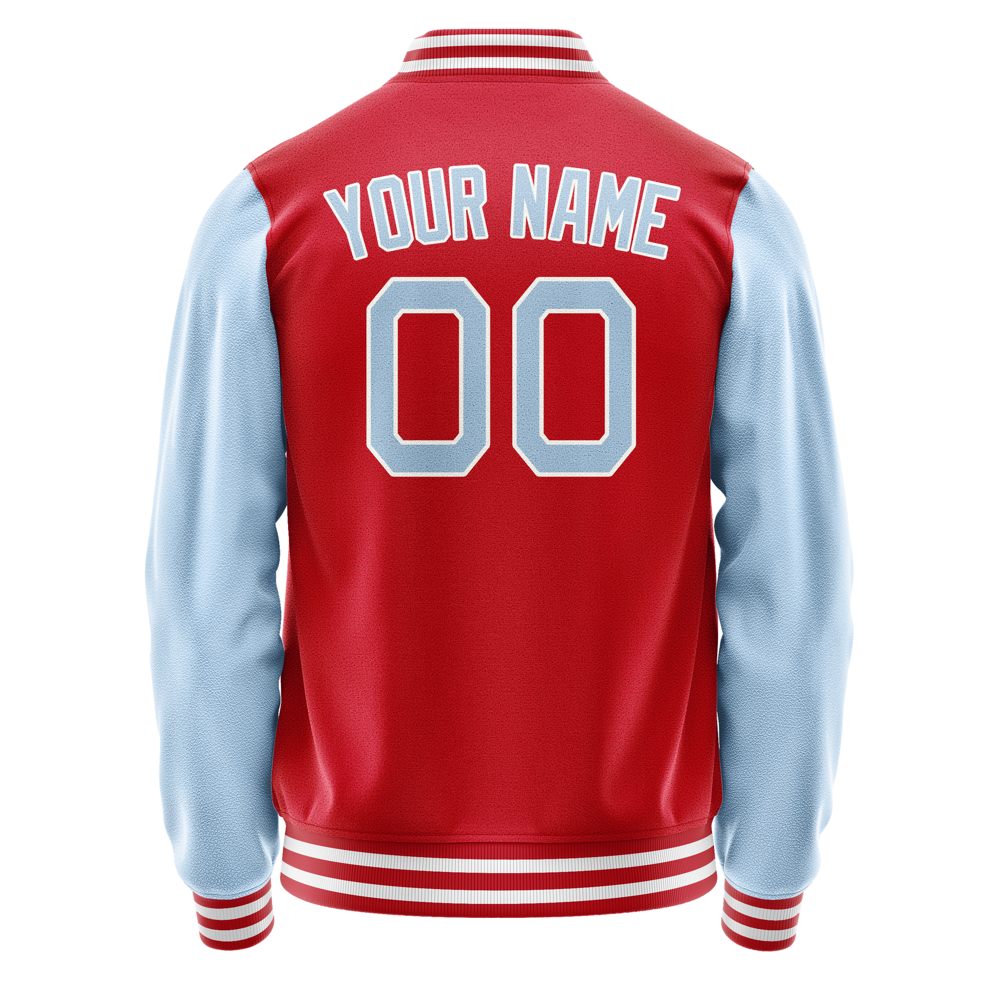 Custom Red Light-Blue Solid Color Varsity Letterman Jacket
