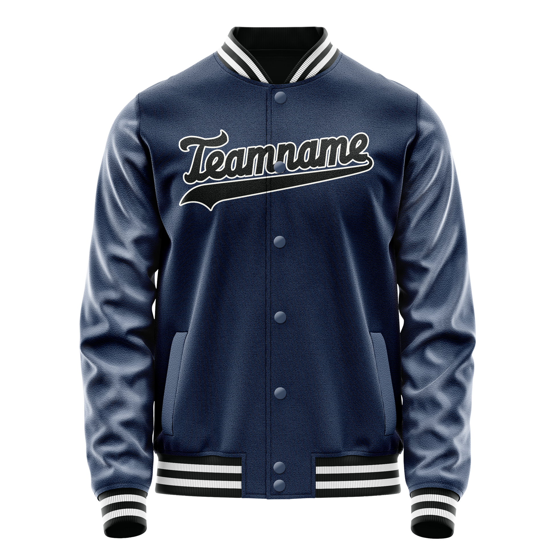 Custom Royal Black Solid Color Varsity Letterman Jacket