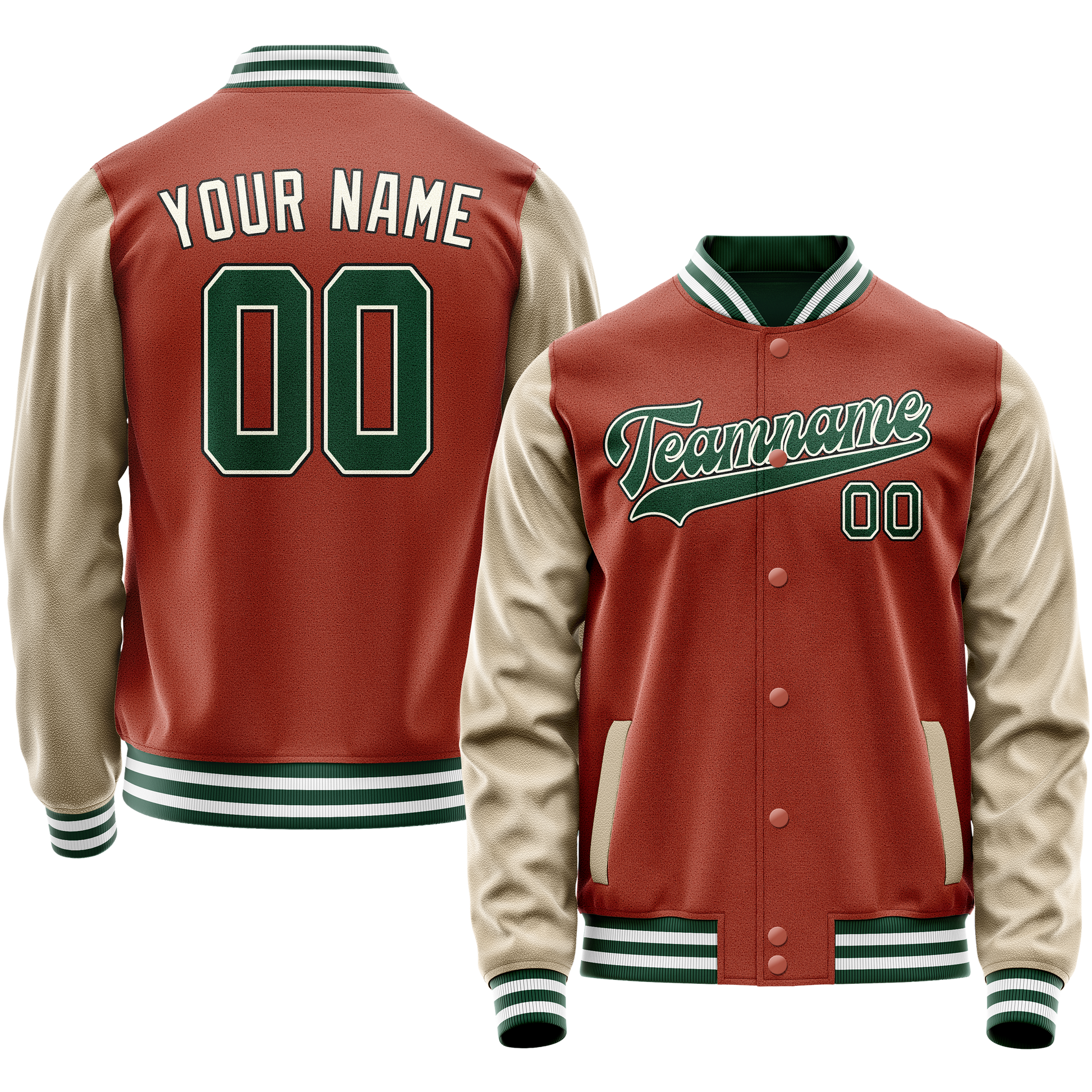 Custom Texas-Orange Cream Solid Color Varsity Letterman Jacket