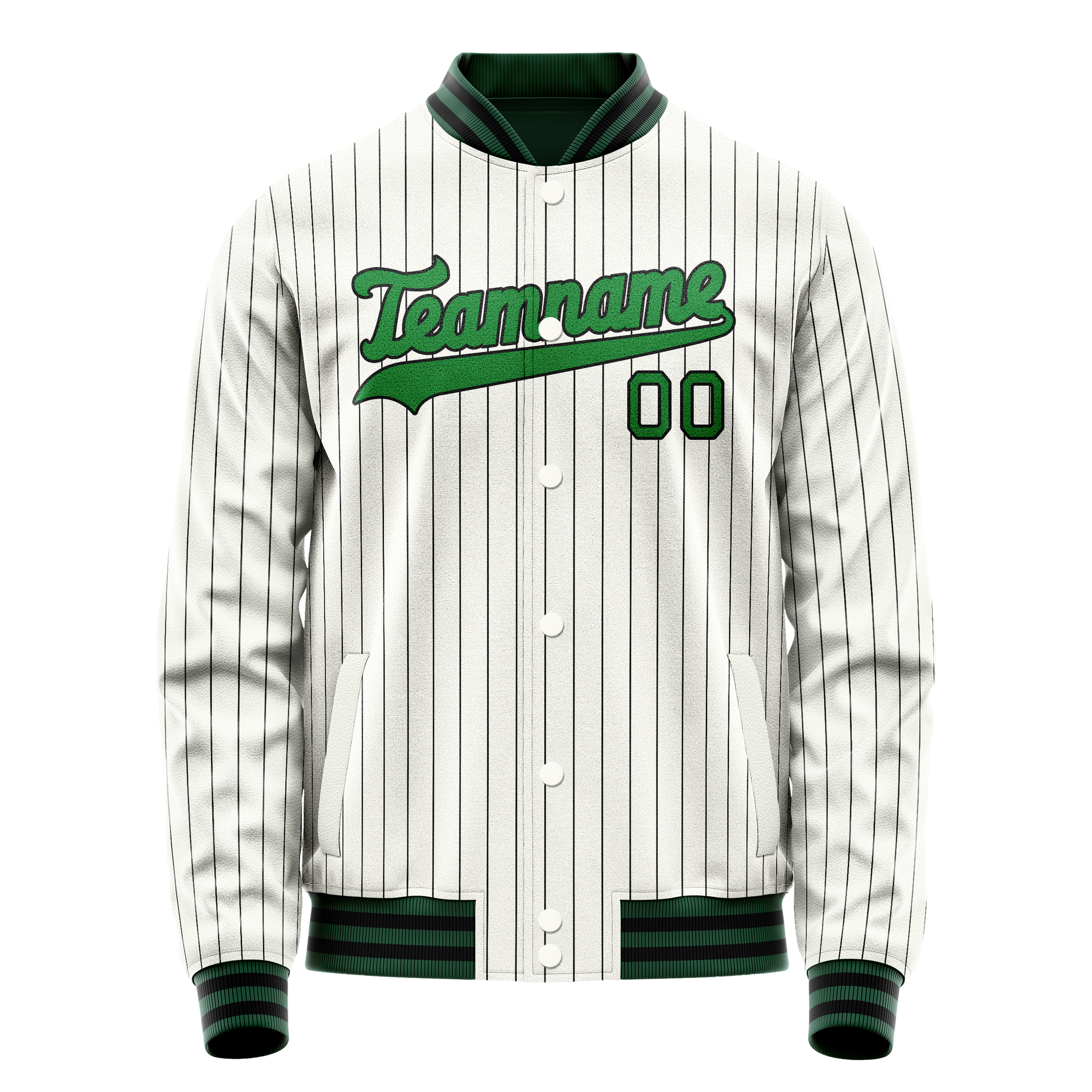 Custom White Neon-Green Black Pinstripe Varsity Letterman Jacket