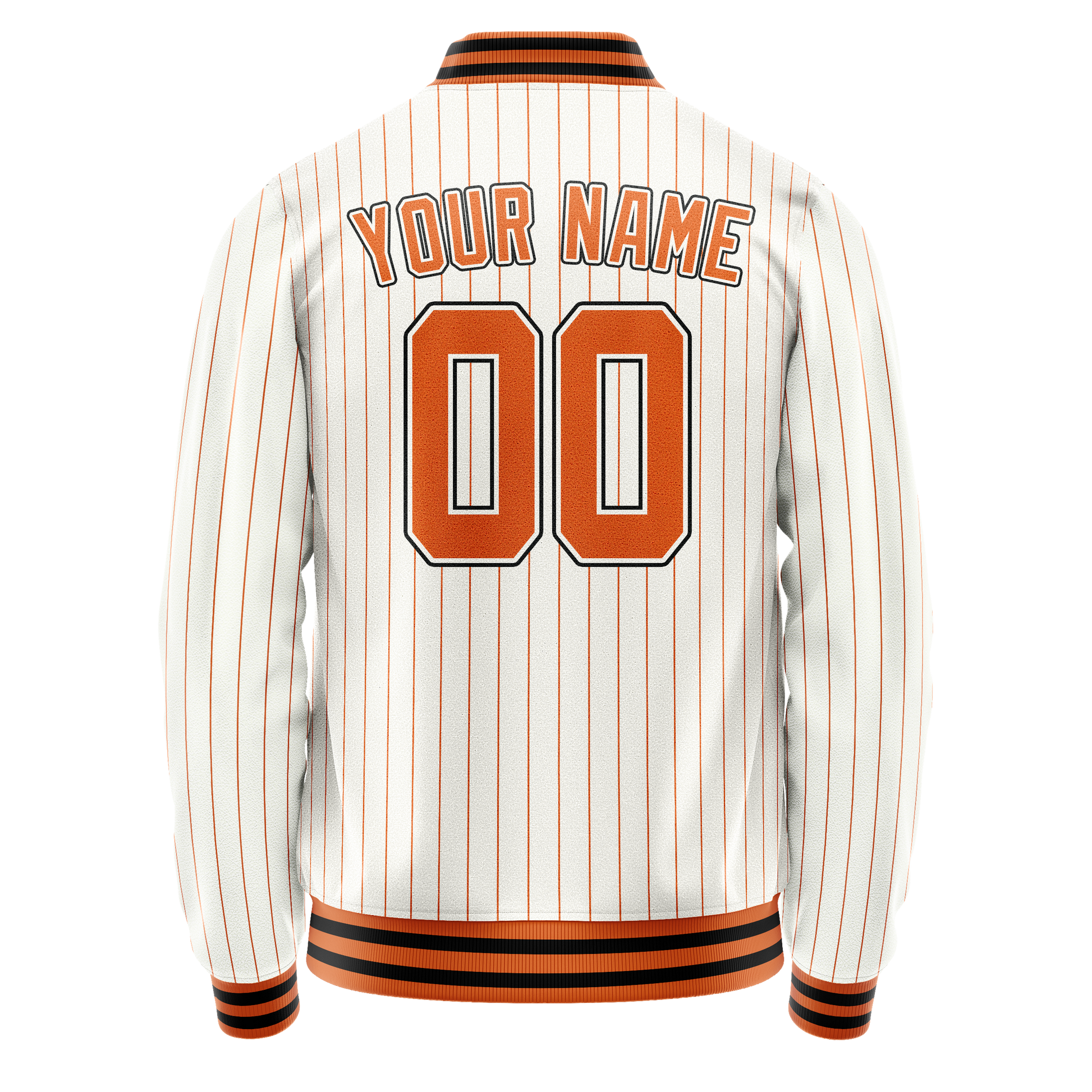 Custom White Orange Orange Pinstripe Varsity Letterman Jacket