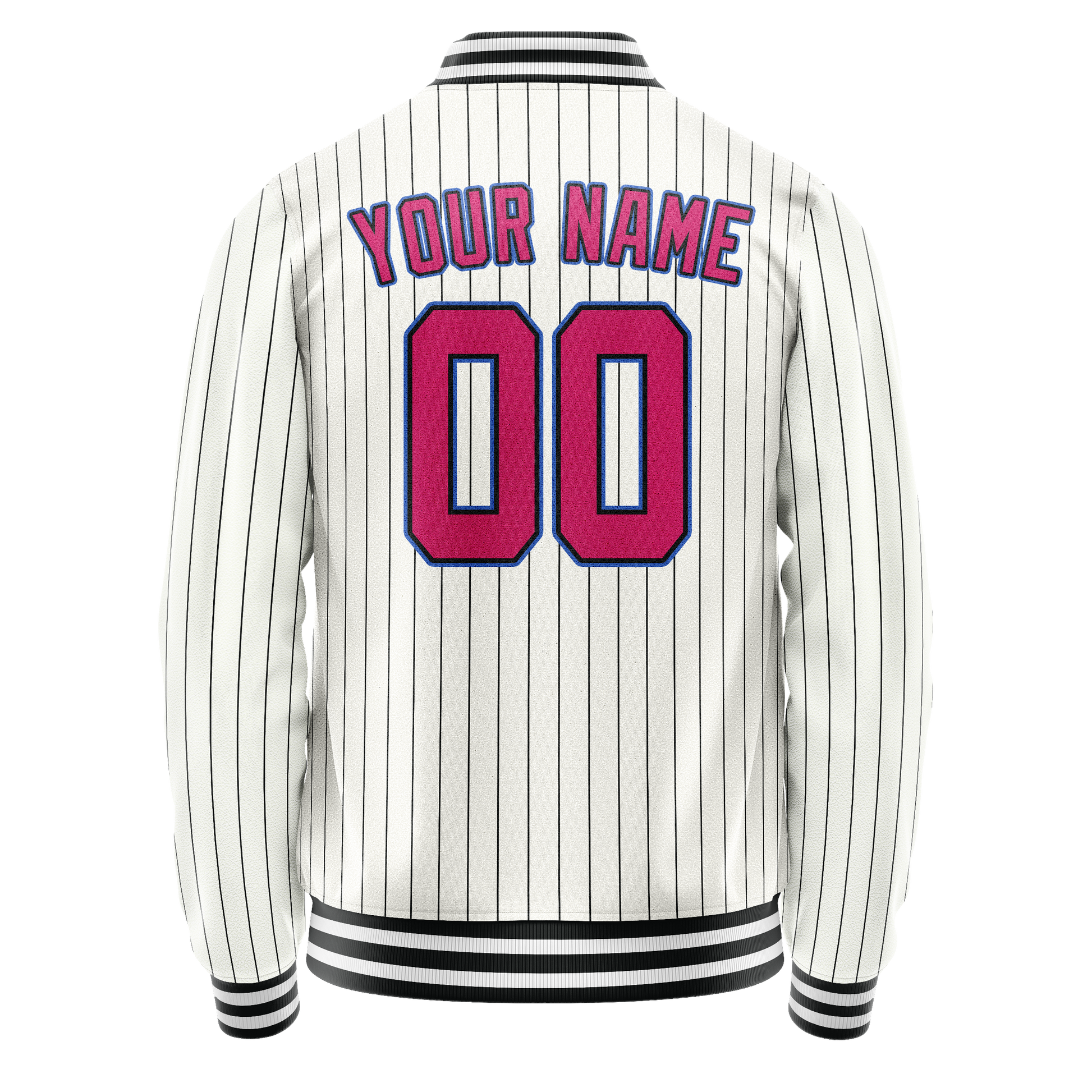 Custom White Pink Black Pinstripe Varsity Letterman Jacket