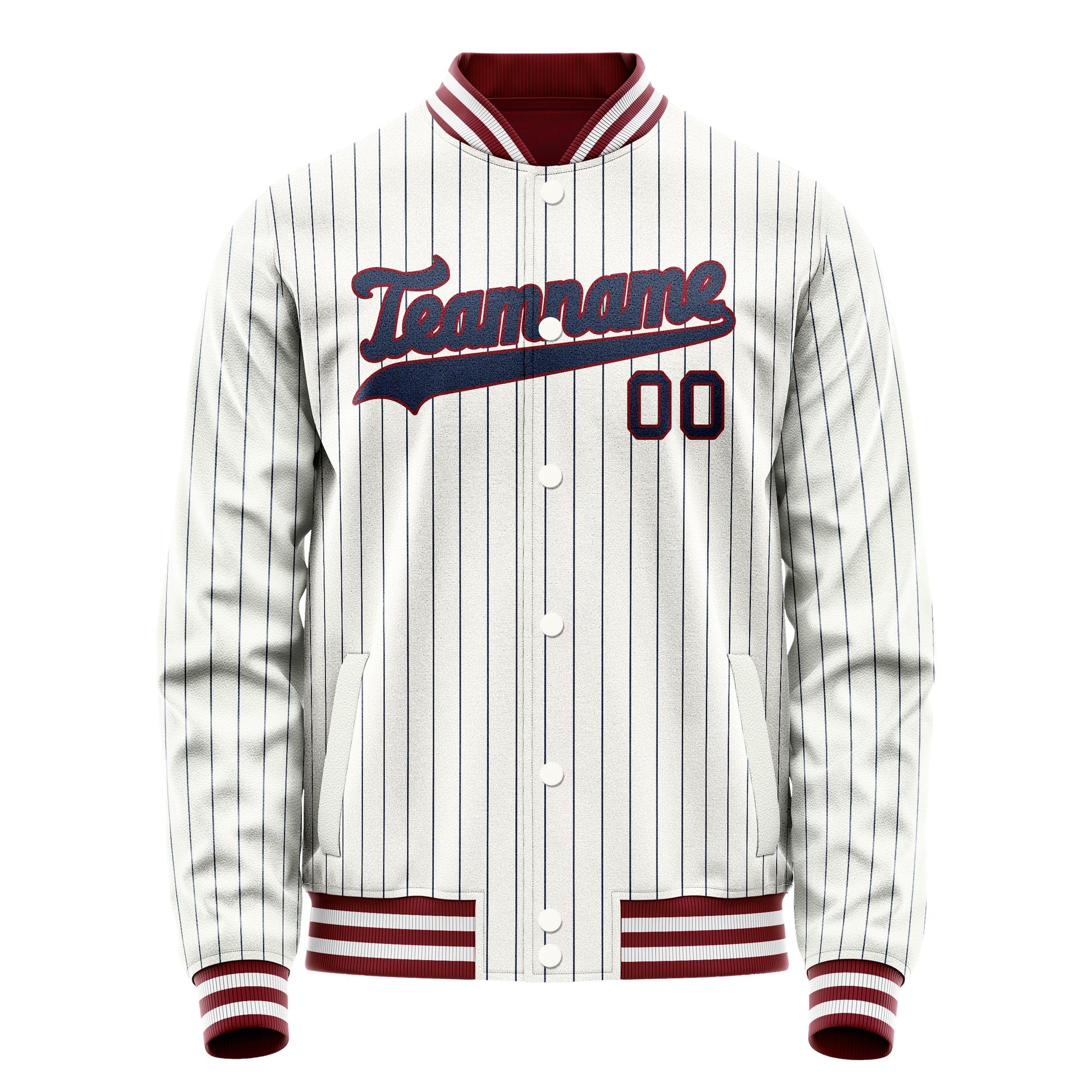 Custom White Royal Royal Pinstripe Varsity Letterman Jacket