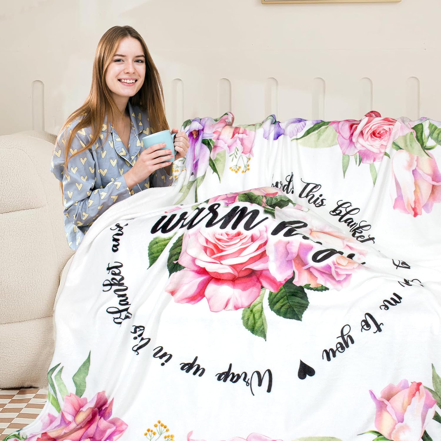 Blanket for Son Gifts, “Warm Hugs”, From Mom Dad, Birthday Christmas Graduation Everyday Encouragement, Inspirational Motivational