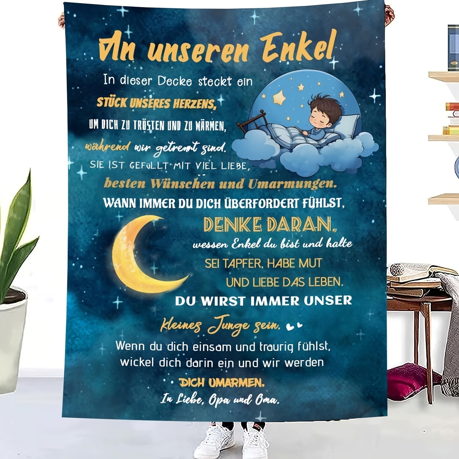 Blanket for Grandson Gifts, “Du wirst immer unser kleiner Junge sein”, From Oma Opa, Birthday Christmas Encouragement, Inspirational