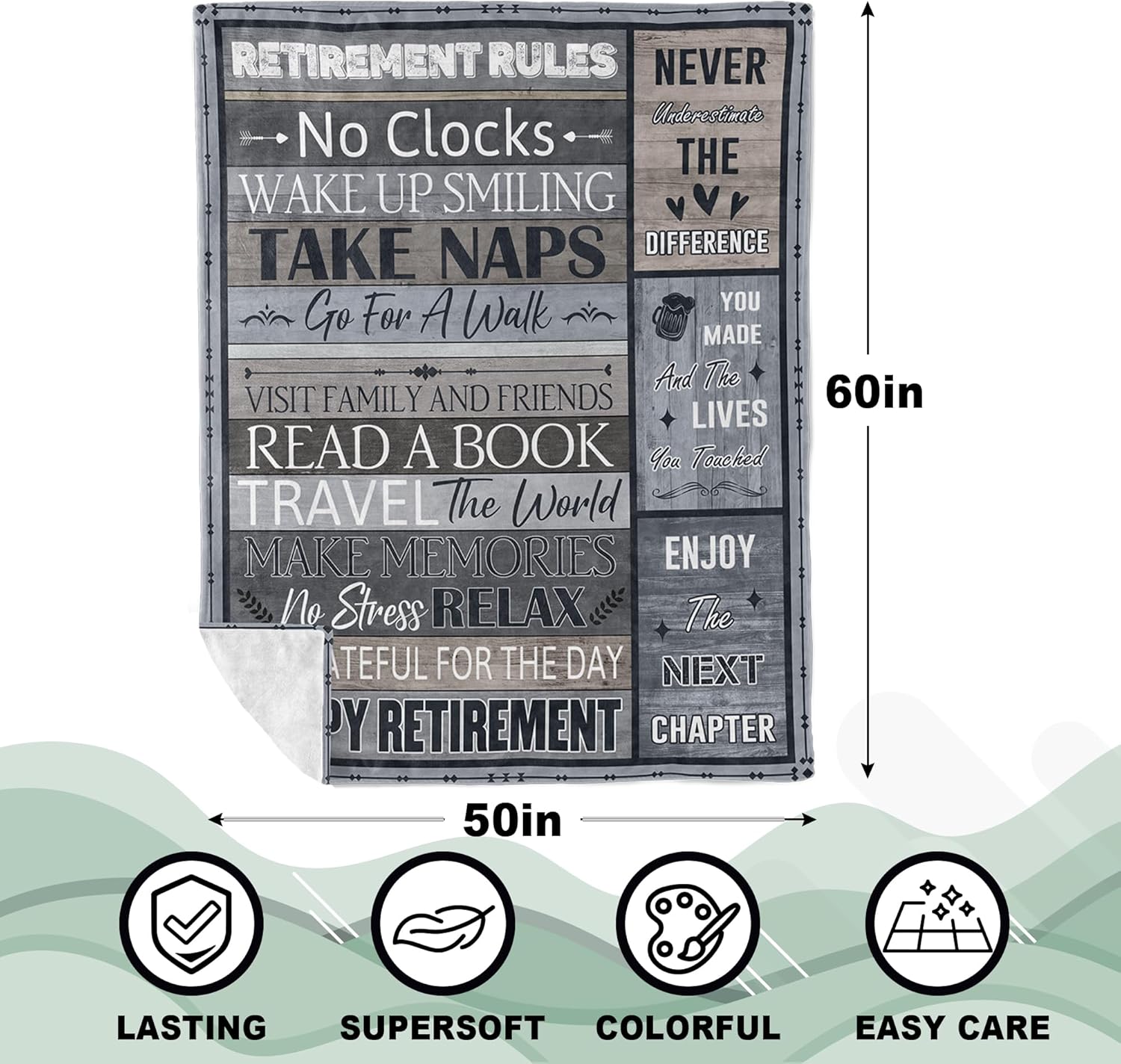 Blanket for Retirement Gifts, “Retirement Rules: Happy Retirement”, From Family Friends, Birthday Christmas Holiday, Inspirational Theme