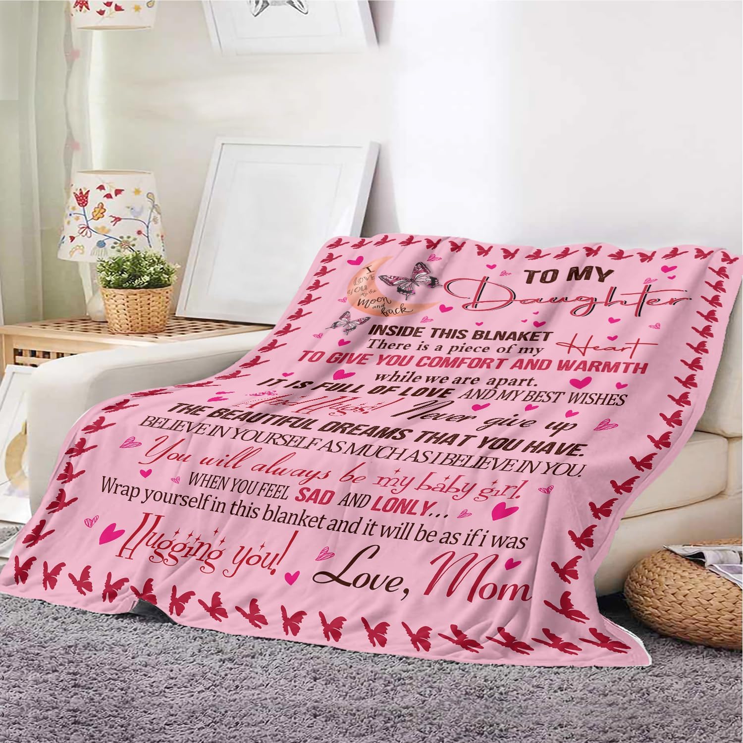 Gifts for Daughter Blanket, "To My Daughter, Never Give Up the Beautiful Dreams That You Have", From Mom, Birthday Christmas Graduation, Inspirational